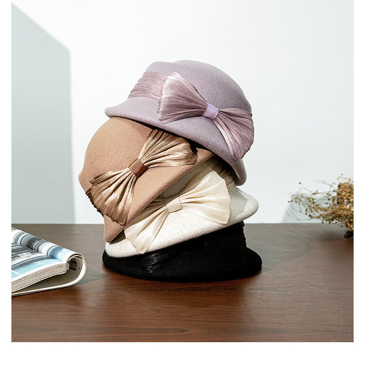 Women Elegant Winter Bow Silkabaca Wool Wedding Tea Party Porkpie Hat