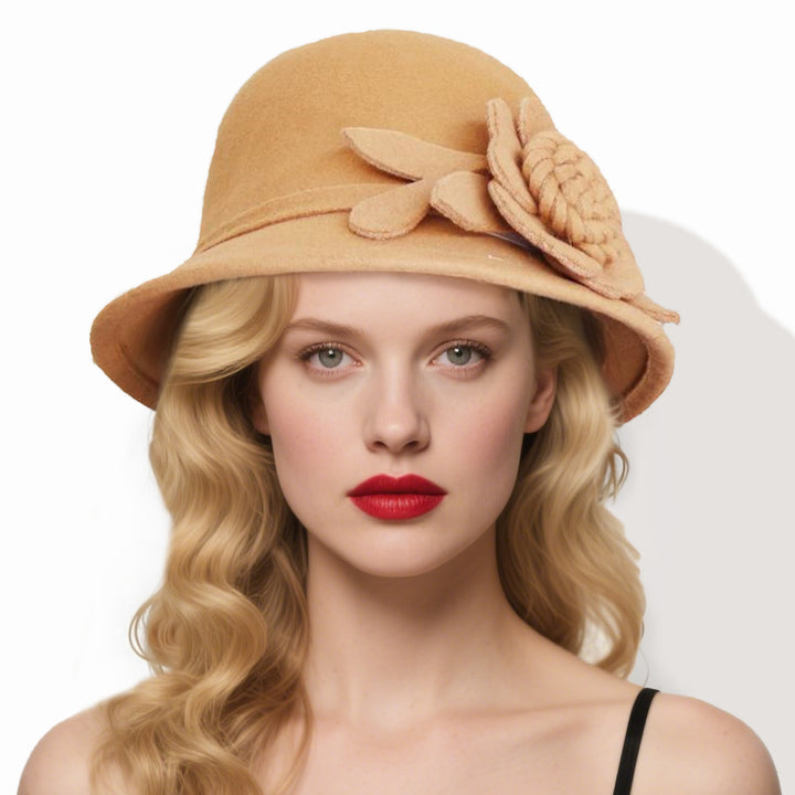 Women's Elegant Winter Felt With Flower Cocktail Bowler Hats Church Hats