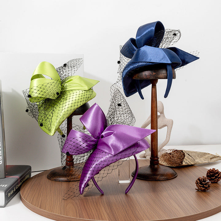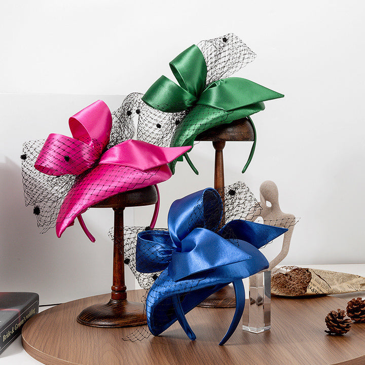 Women Vintage Bow Veil Satin Wedding Kentucky Derby Fascinators With Headband
