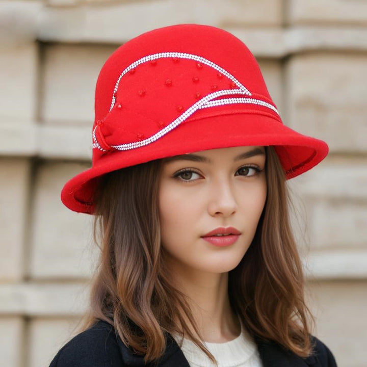 Women's Vintage Felt With Rhinestone Cocktail Bowler Hats Church Hats