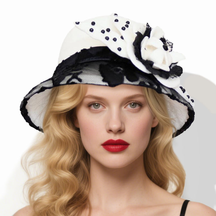 Women's Vintage Winter Felt With Flower Rhinestone Lace Cocktail Bowler Hats Church Hats