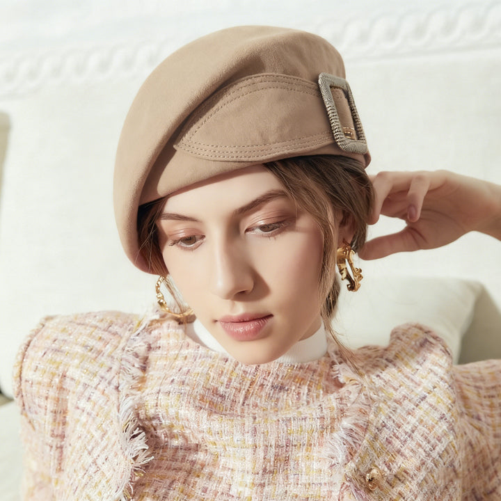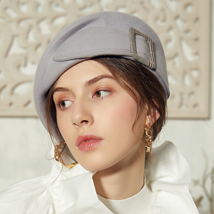 Women's Classic Winter Buckle Wool Cocktail Wedding Guest Beret Hats
