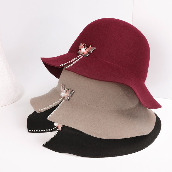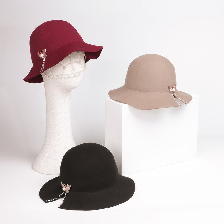 Women's Classic Winter Pearl Rhinestone Wool Fedora Hats