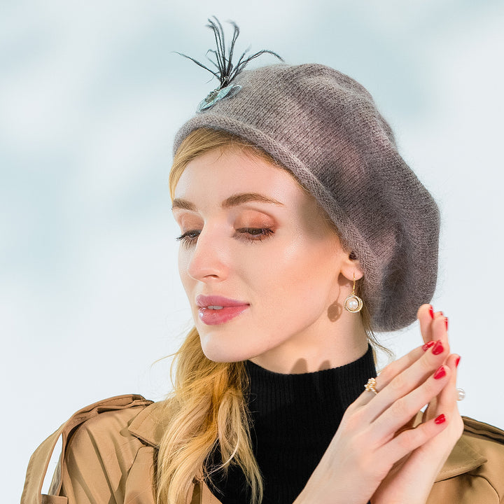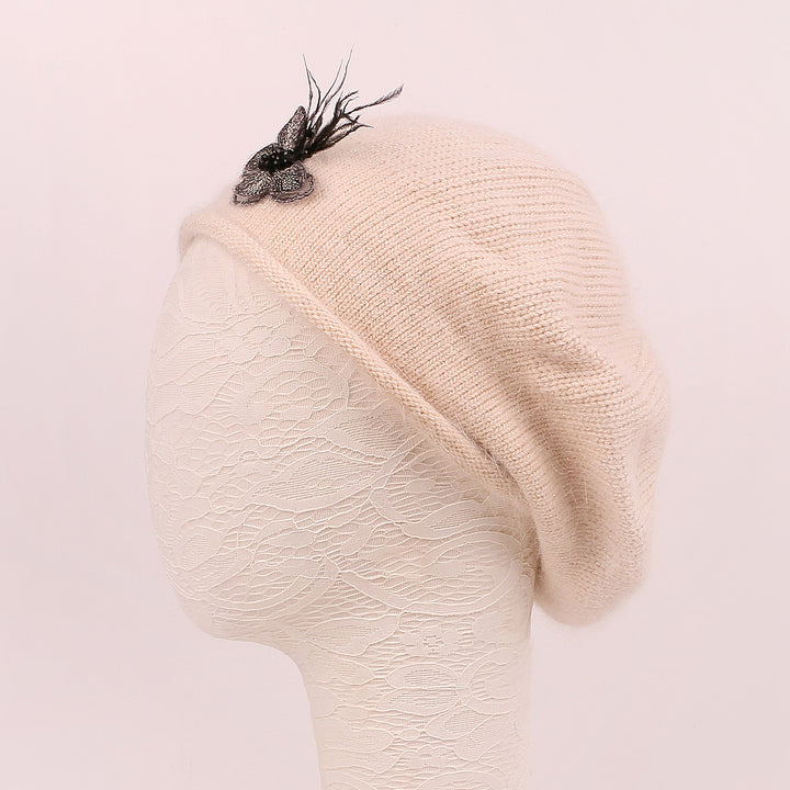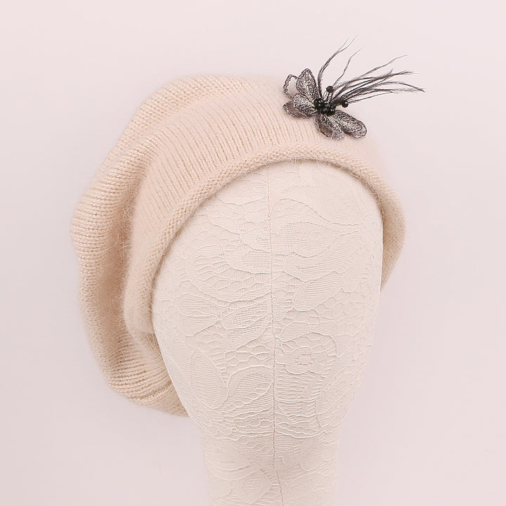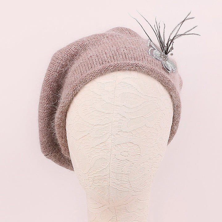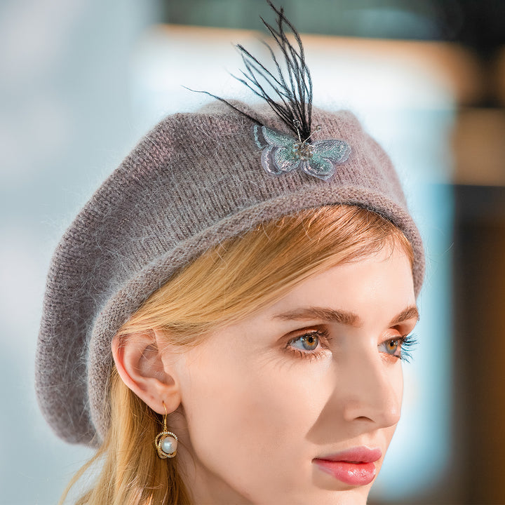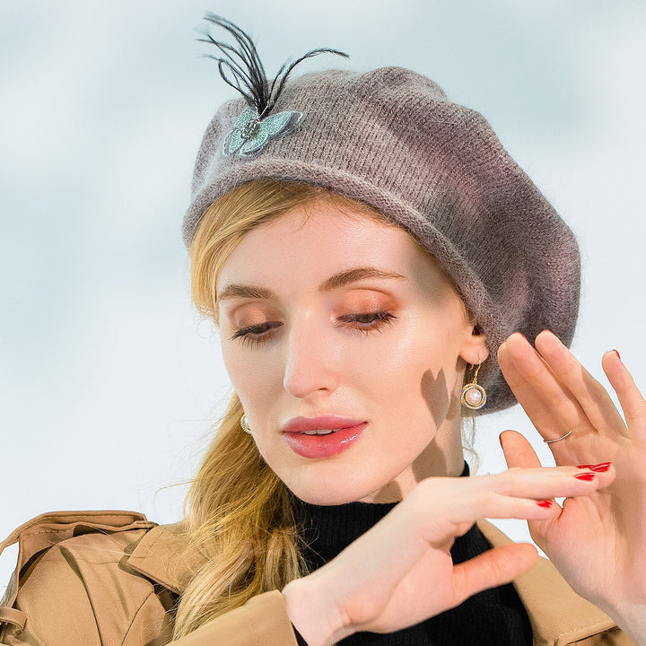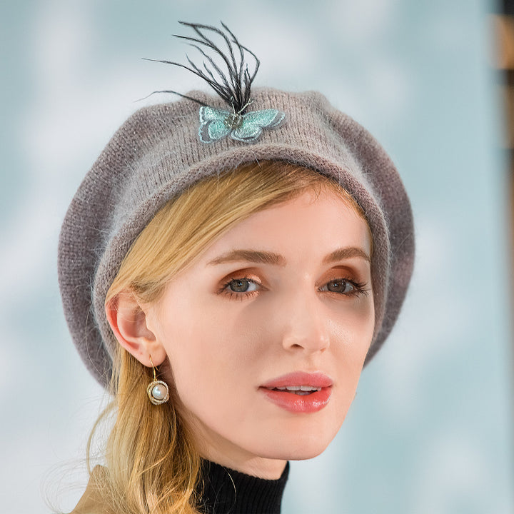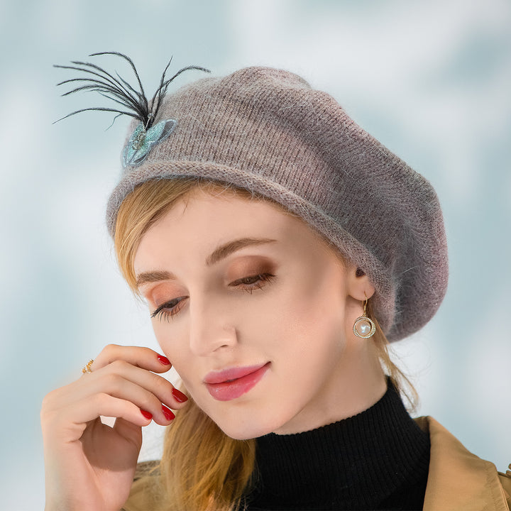 Womens Elegant Winter Butterfly Faux Feather Wool Wedding Cocktail Beret Hats