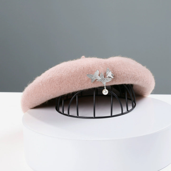 Women's Fashion Winter Wool With Rhinestone Casual Beret Hats