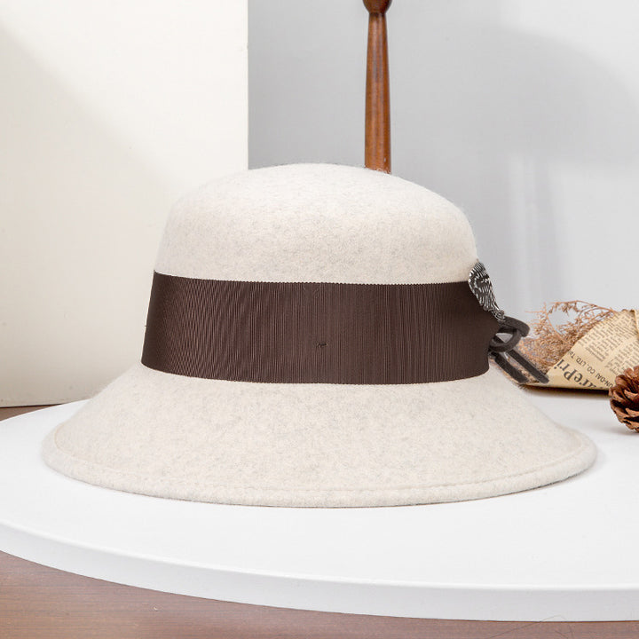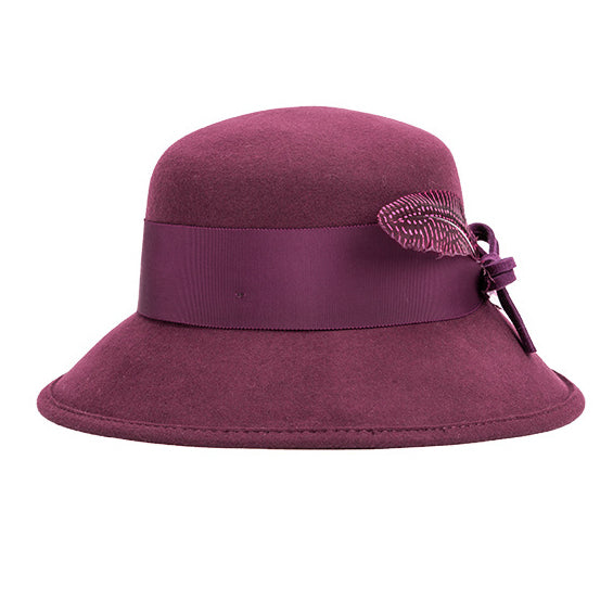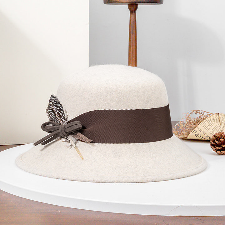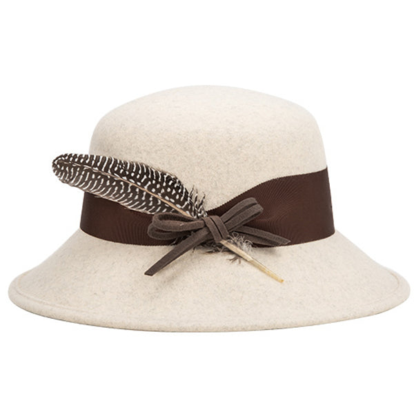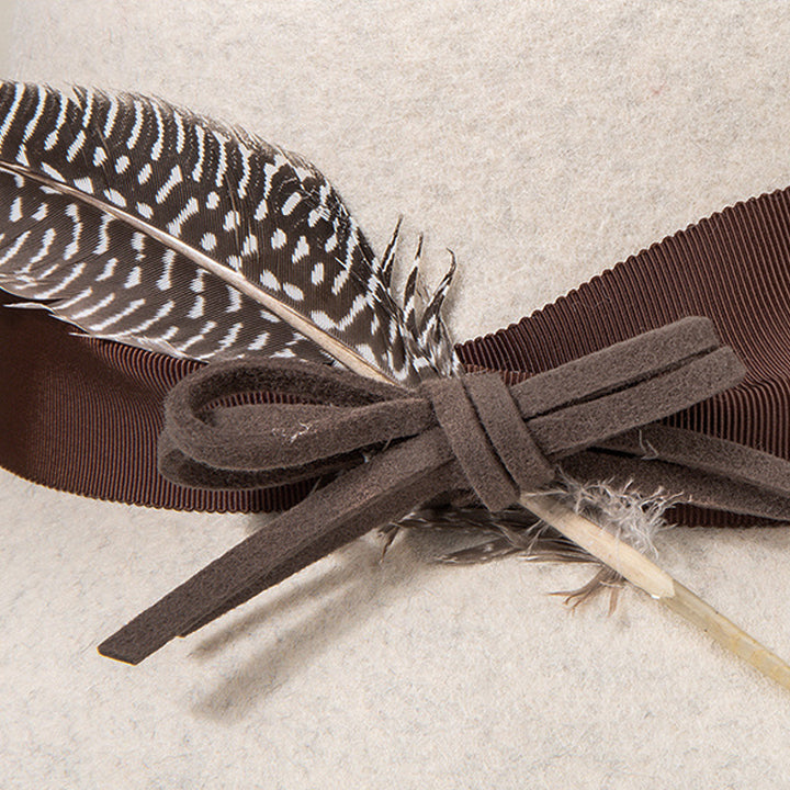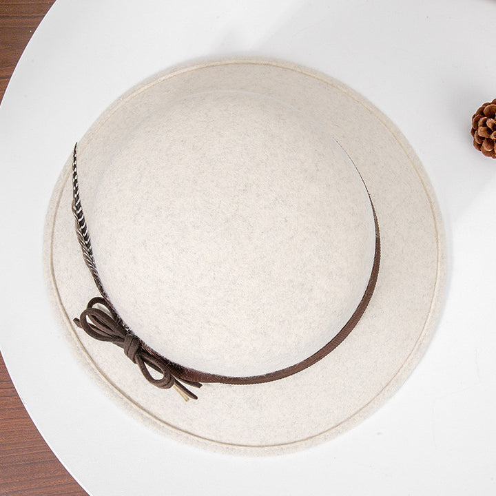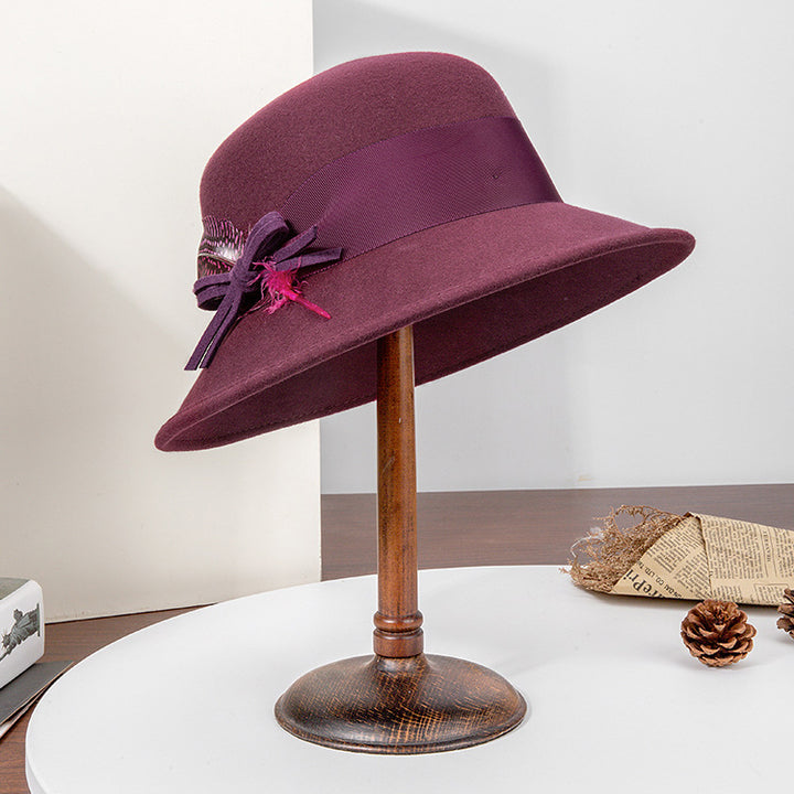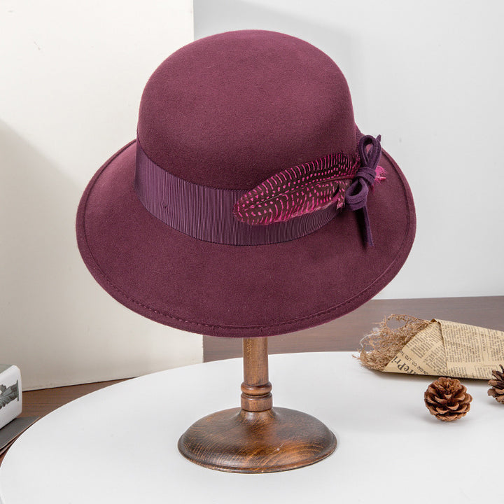 Women's Vintage Winter Wool Faux Feather Ribbons Cocktail Fedora Hats