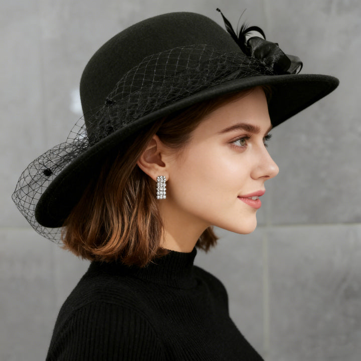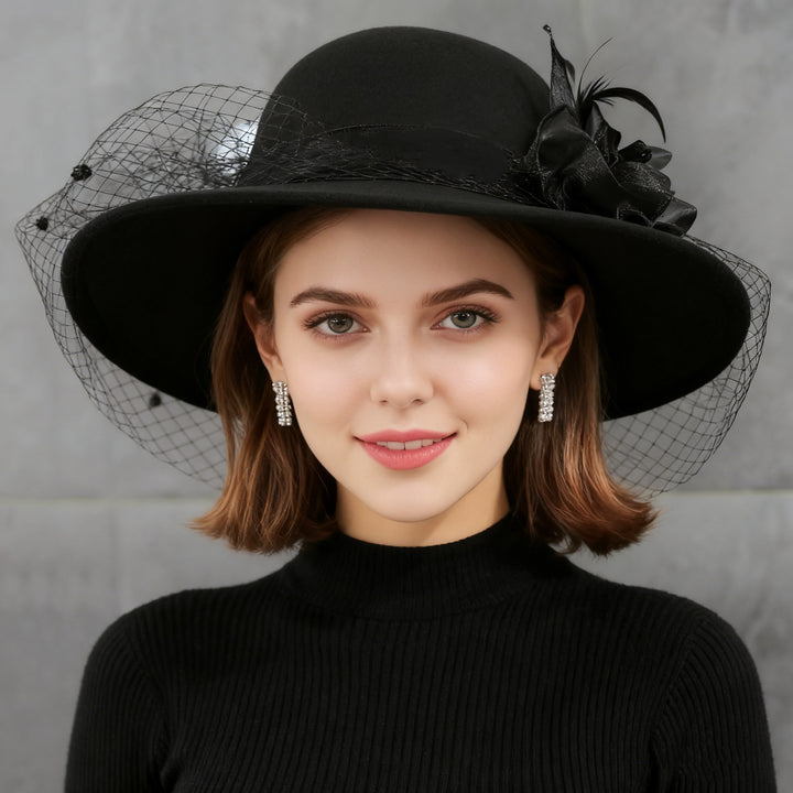 Wide Brim Felt Hat step into elegance. designed to offer both warmth and style. Featuring a large, exquisite flower detail, this hat is perfect for making a statement at the Kentucky Derby, a wedding, or a church service. While the soft felt construction ensures both comfort and a refined look.