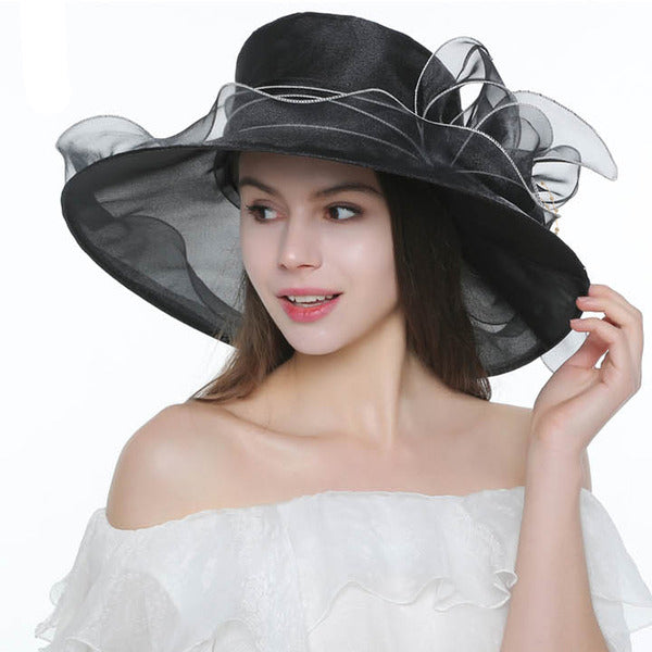 Women's Wide Brim Organza With Bowknot Kentucky Derby Church Hats